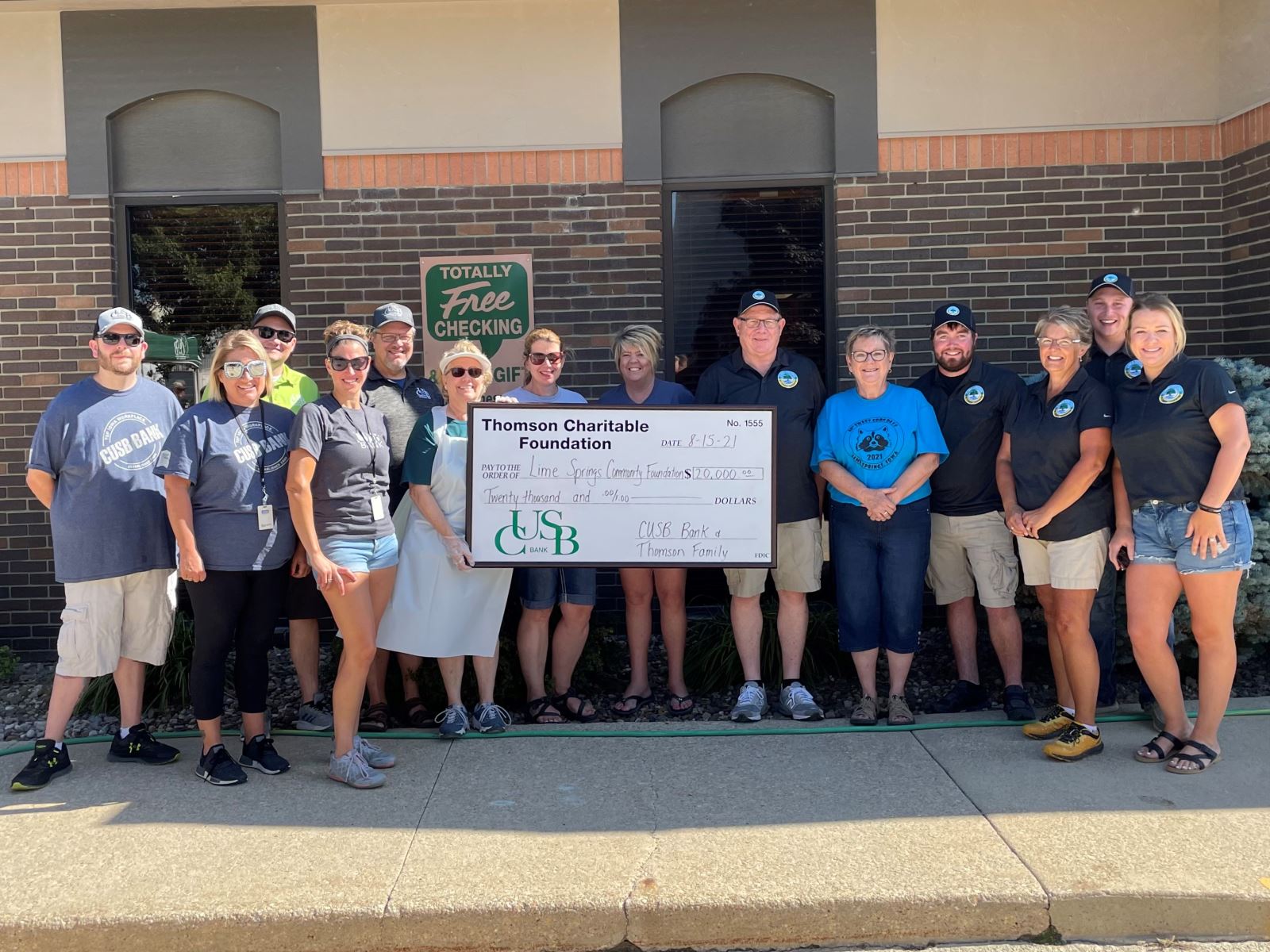 posted on Tuesday, August 17, 2021 CUSB, Thomson Charitable give $20,000 to Lime Springs Area Community Endowment Fund