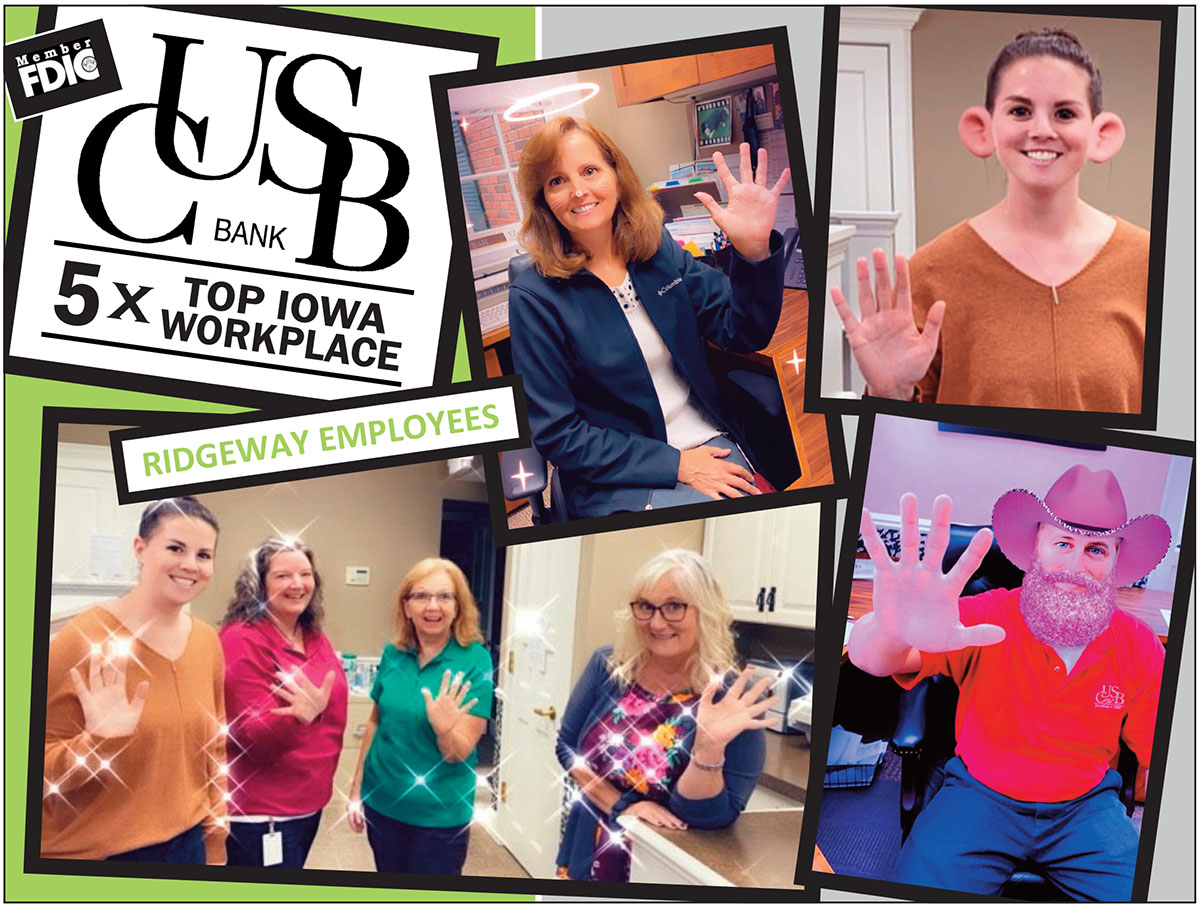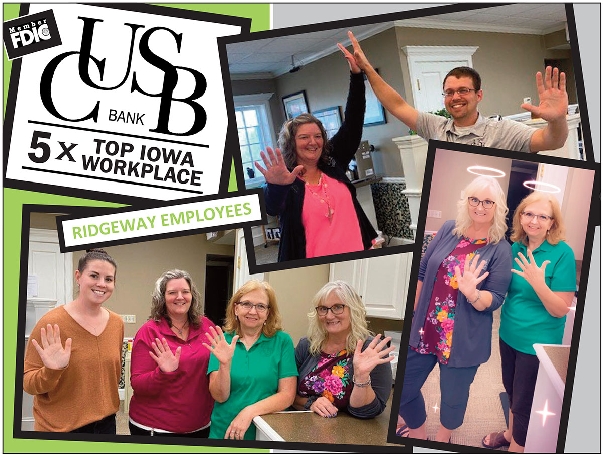 CUSB Bank is pleased to announce that it has been selected as one of Iowa’s Top Workplaces by the Des Moines Register. The announcement was made in the Des Moines Register’s publication on Sunday, Sept. 13. This is the fifth time for this designation, being named a Top Iowa Workplace in 2011, 2014, 2016, 2018, and 2020.