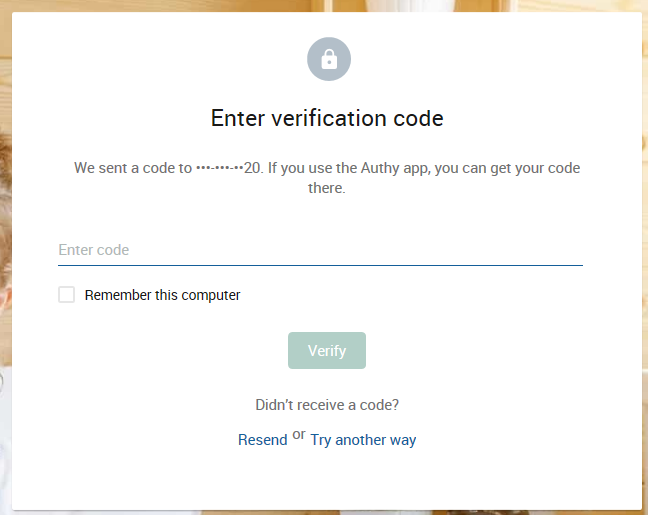 Once log in credentials are entered, you'll be prompted to enter your code.
